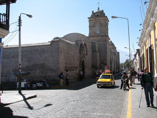Santa Catalina Monastery from outside, typical street in Arequipa, Peru