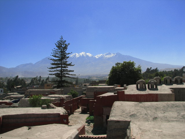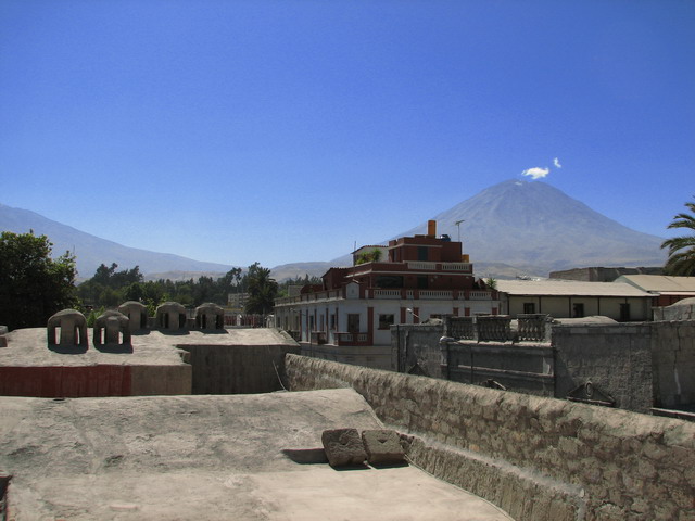 El Misti volcano from the roofs of Santa Catalina Monastery, southern Peru near the city of Arequipa