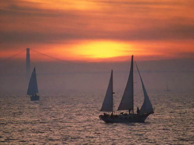 Sunset over the Tagus river (Rio Tejo), longest river on the Iberian Peninsula, in Portugal