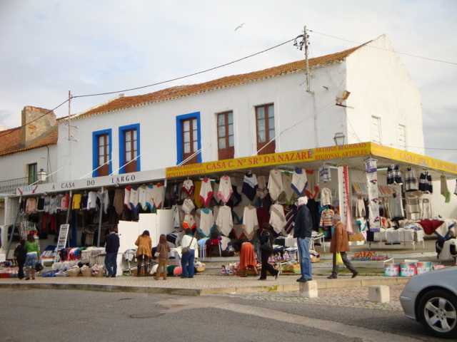 Shops downtown Nazaré seaside village, located on the Atlantic coast, Portugal