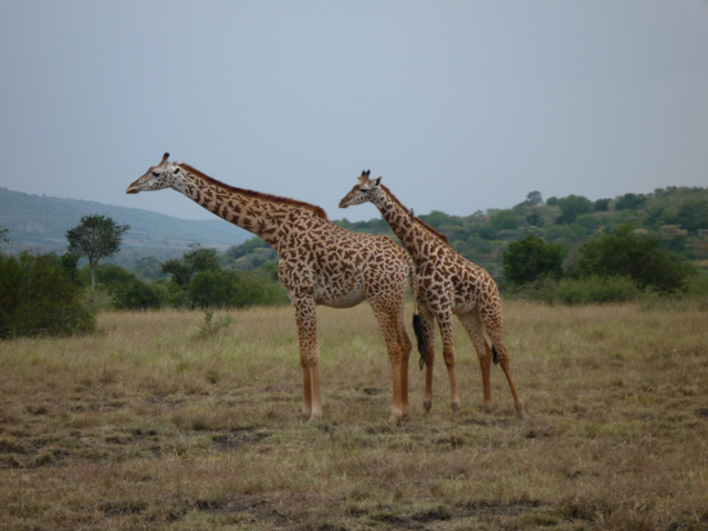 Couple of giraffes in the Akagera National Park, national park in Rwanda, against the Tanzanian border