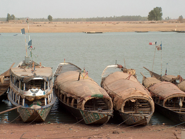 Boats on the Niger River in Koulikoro, Koulikoro Cercle, Koulikoro Region, Mali