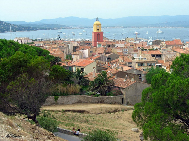 La baie de St. Tropez et l'église de Saint-Tropez - Saint-Tropez dans le Var, Provence-Alpes-Côte d'Azur, France