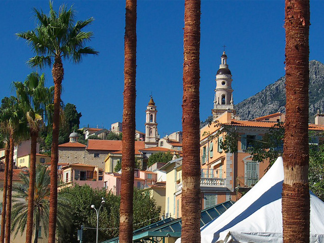 Le centre de Menton avec le clocher de la basilique Saint-Michel-Archange - Menton, France