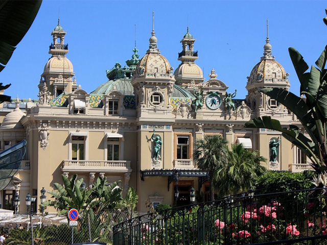 Le casino de Monte-Carlo entouré de jardins, situé en plein cœur de Monte-Carlo, voisin de l'Hôtel de Paris sur la place du Casino - Monaco