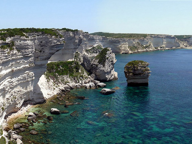 Falaise calcaire soumise à l'érosion avec le Grain de sable - Bonifacio, Corse-du-Sud, France