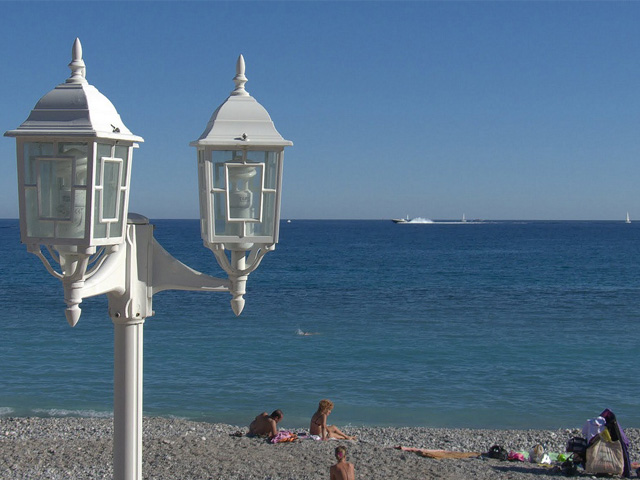 Plage à Menton, vue sur la mer Méditerranée - Menton (Alpes-Maritimes), France