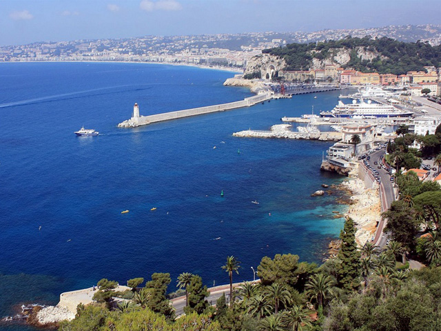 Vue de Nice : la Promenade des Anglais et le port de Nice, Provence-Alpes-Côte d'Azur, en France